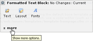 Each Element provides a set of click here wizards or dialogs to assist with setting associated content options, for example, to specify text format properties (colors and fonts) or to change layout attributes (right, center, or left-aligned).